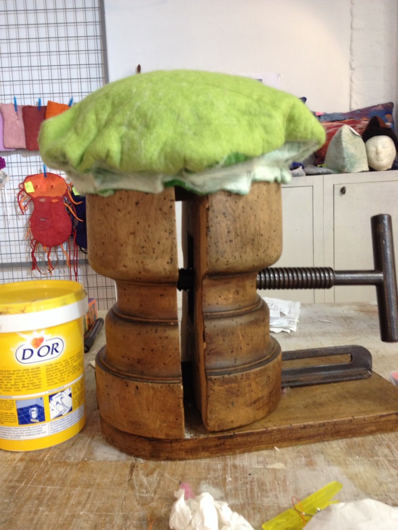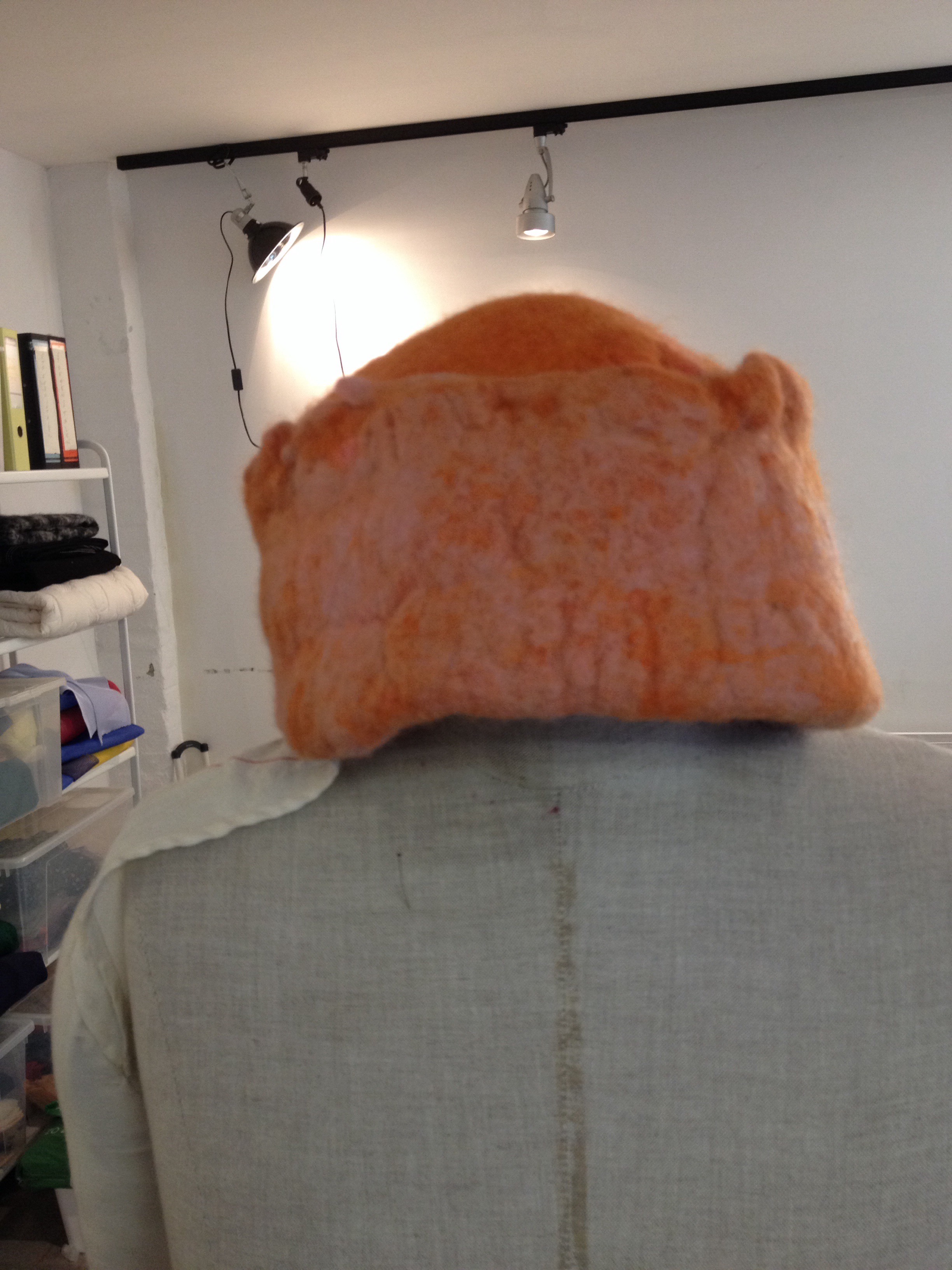 The two berrethats that i made where cut open to large. I’ve removed one into a pillboxhat the other one will stay as a berrethat but nitting together into a smaller size.