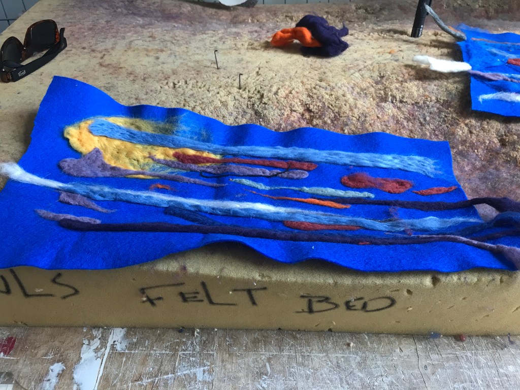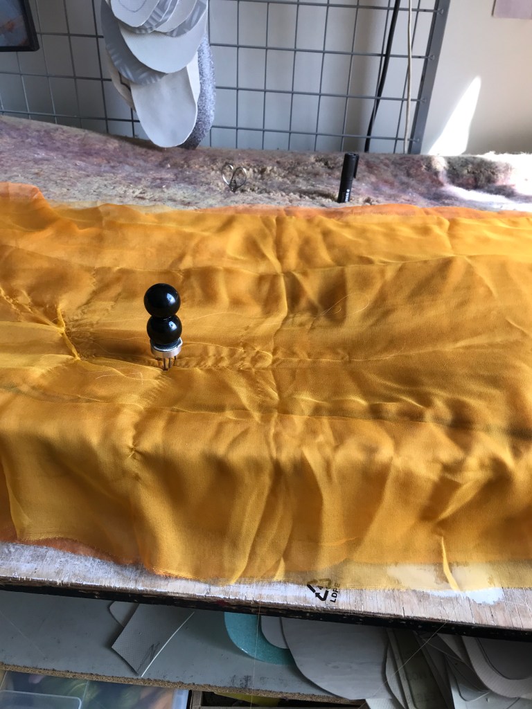 Back on track. Pricking an orange scarf for the mom’ I hope the washing process can start next week