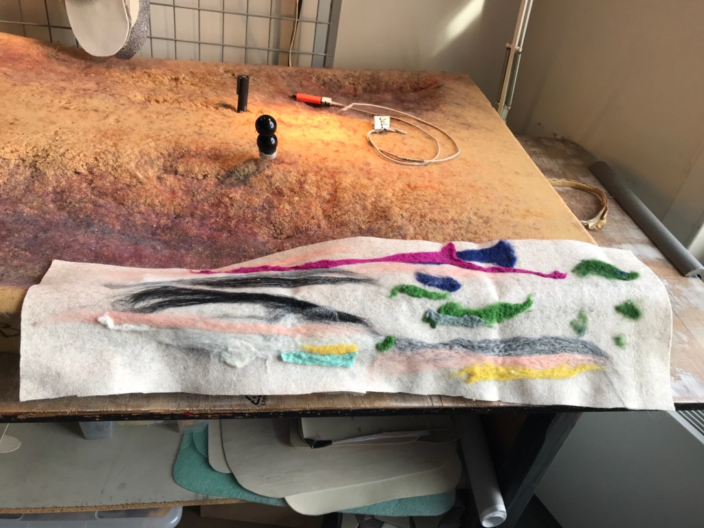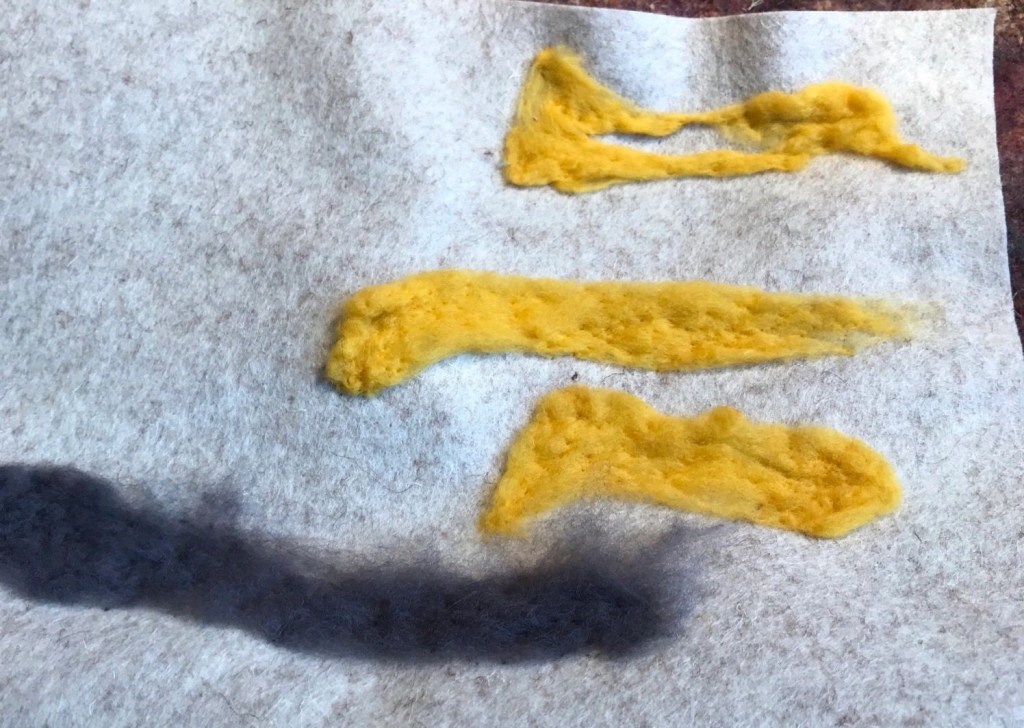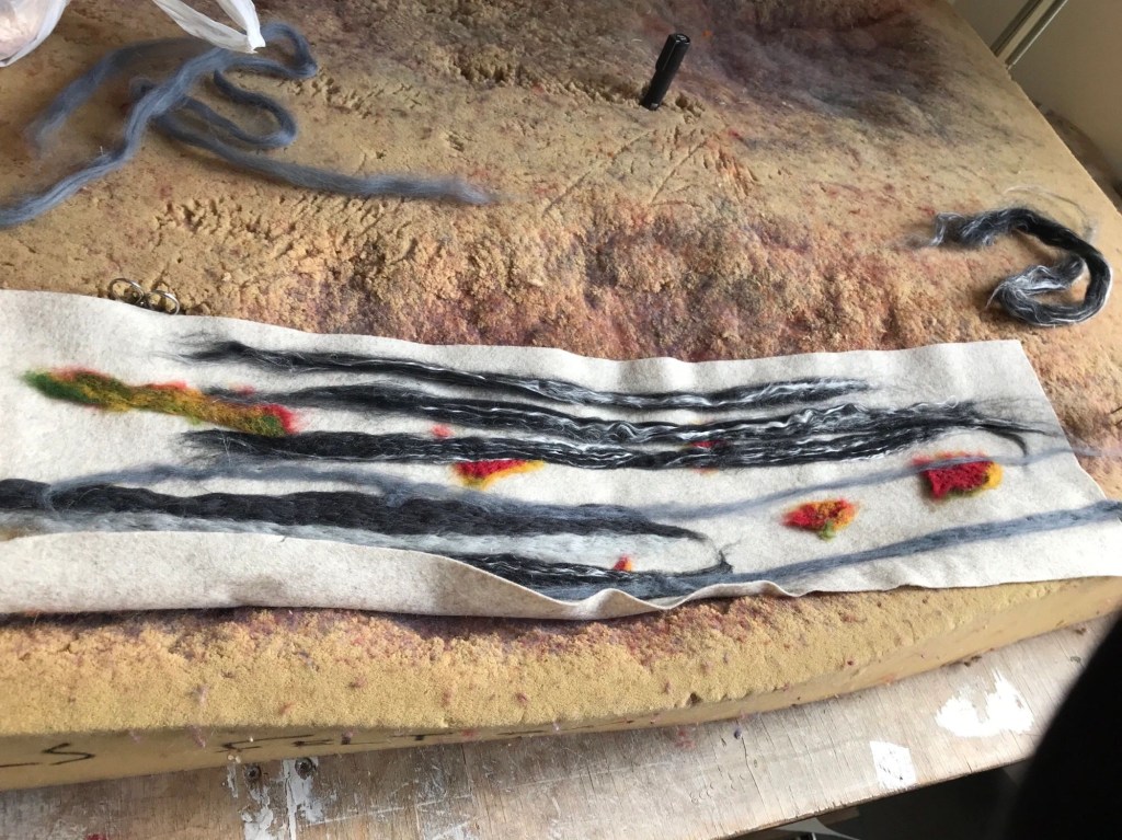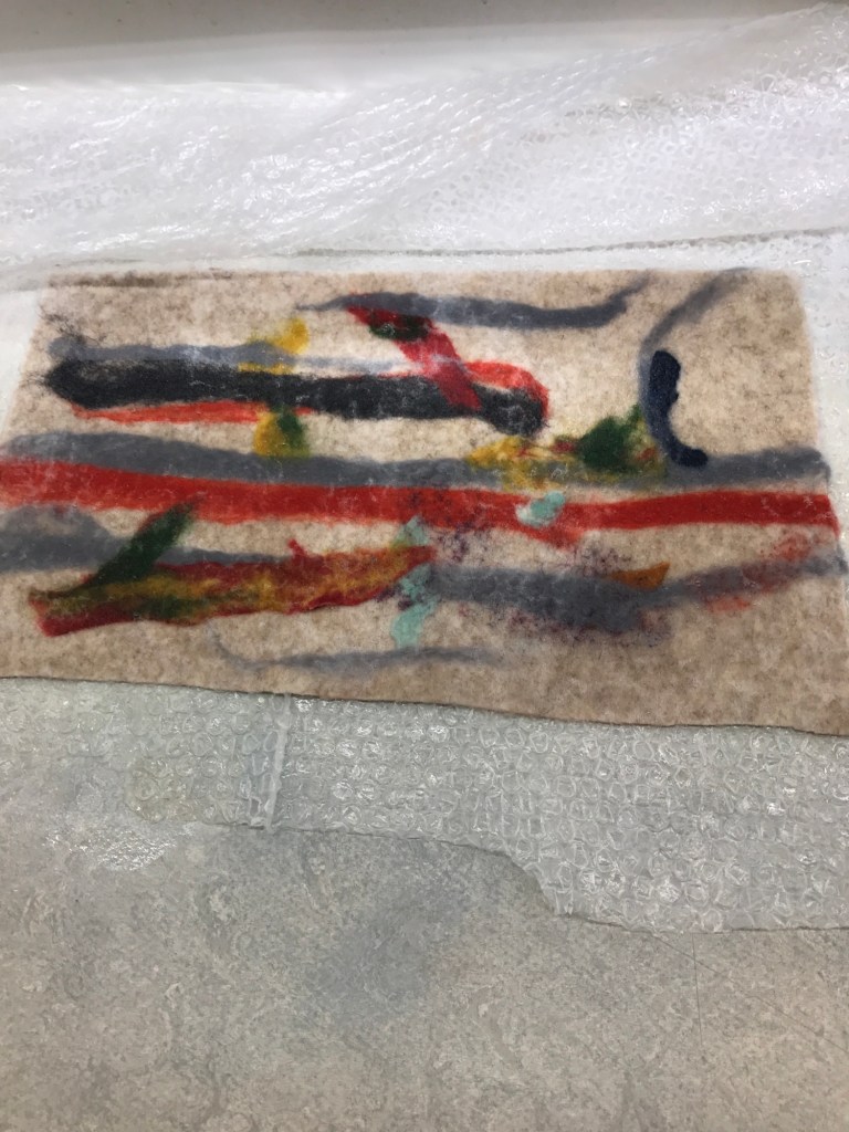 Still no pillows. I only have pressed felt for the moment. So I making a painting with orange black and yellow today