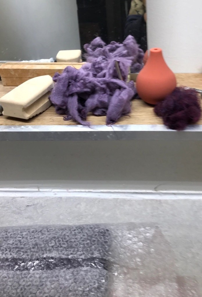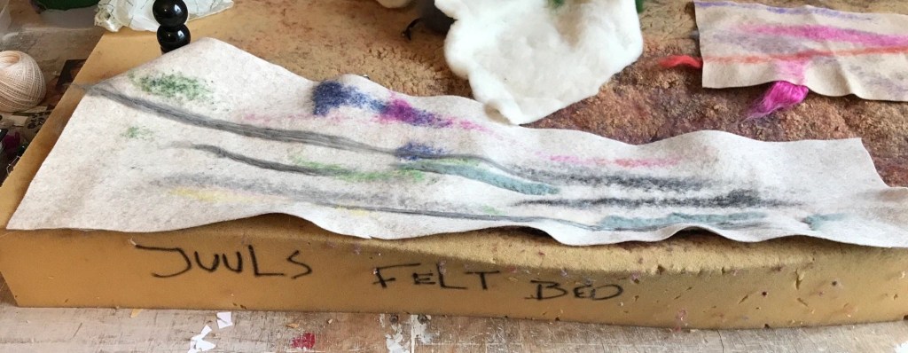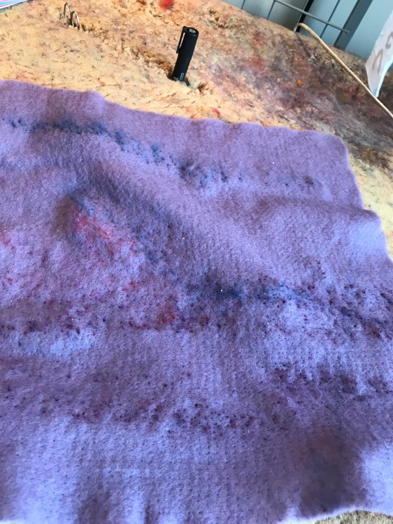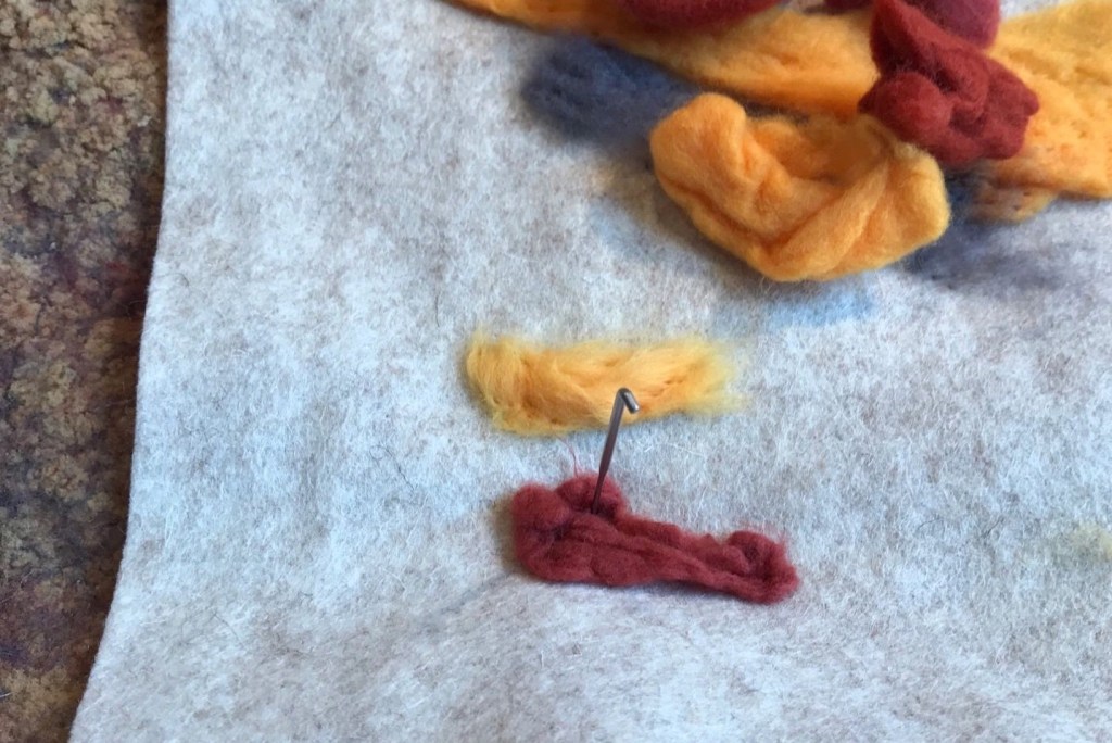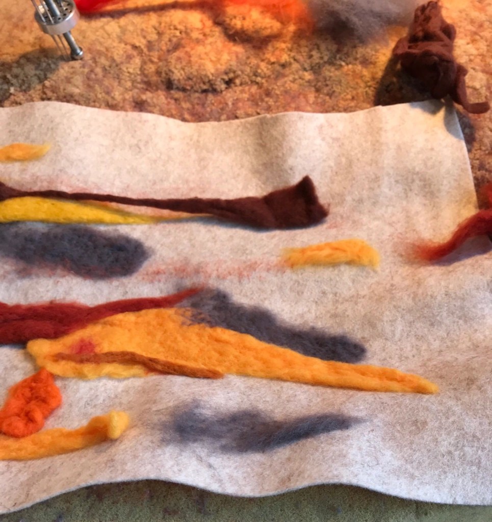 Still no pillows. I only have pressed felt for the moment. So I making a painting with orange black and yellow today