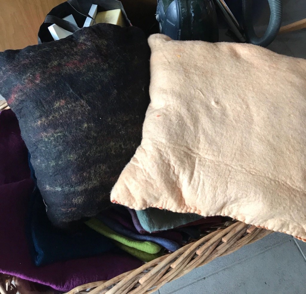 The small paintings are finished. Yesterday eve I made up some pillows that are still left waiting for an owner.