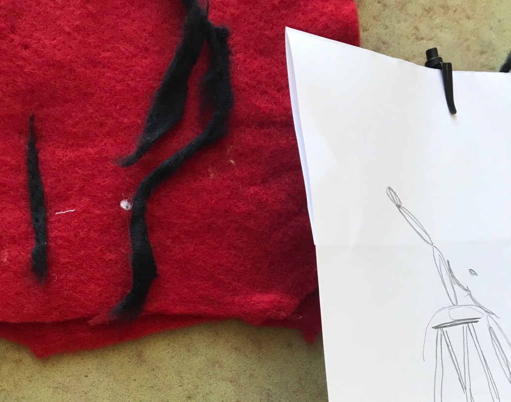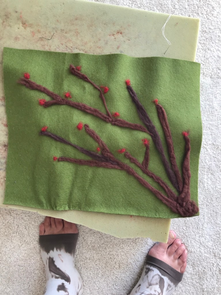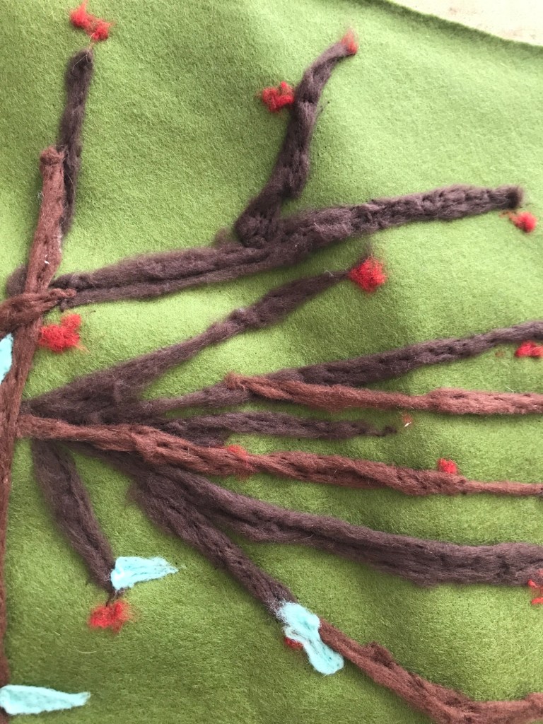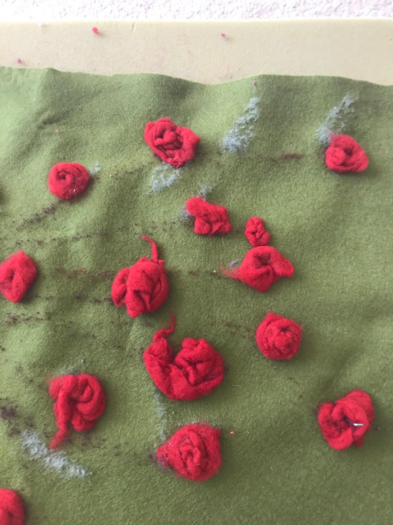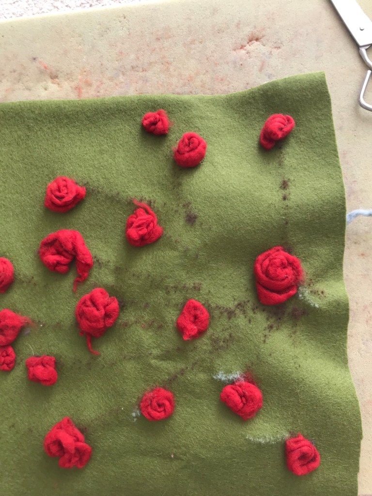 After having breakfast with friends I continue pricking on the rosebush that I started this week.