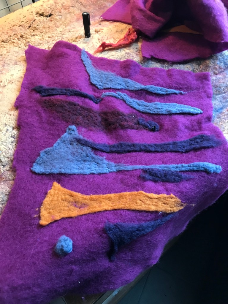 The purple pillow is still in progress. In fact I have to make a sort of a patchwork ‘couse flees is a tricky thing.