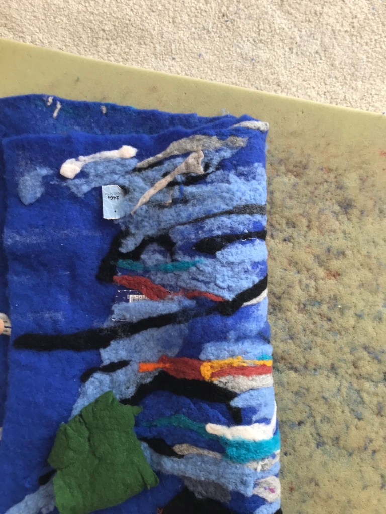Hallo Everyone still pricking on the First Cindy Wright painting. The cart board wouldn’t come trough pretty much. But at this moment the felt becomes hard already. So this is the last phase.