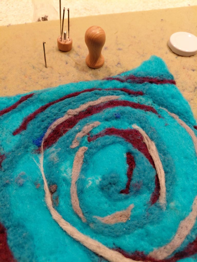 This little hurricane isn’t hard enough felted, in dry process.